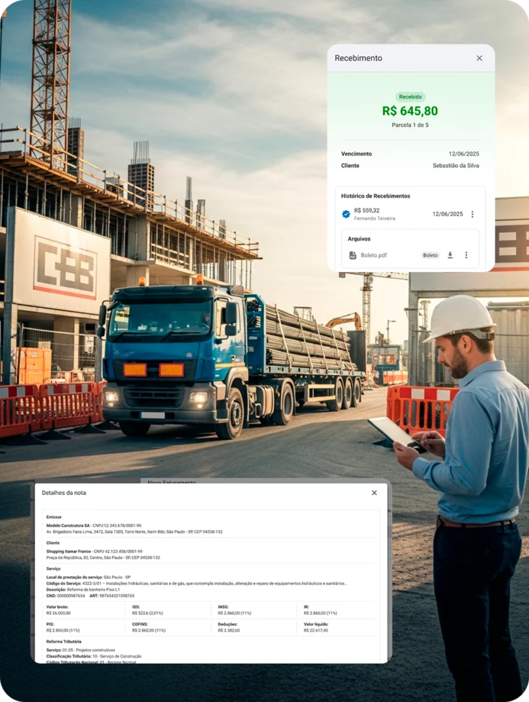 Cada pilar resolve uma etapa crítica do fluxo financeiro e fiscal da sua construtora.