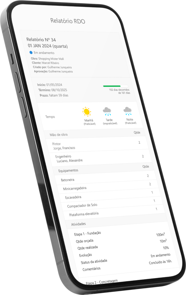 Quantifique o progresso real da sua obra e tenha controle da evolução do que foi planejado.