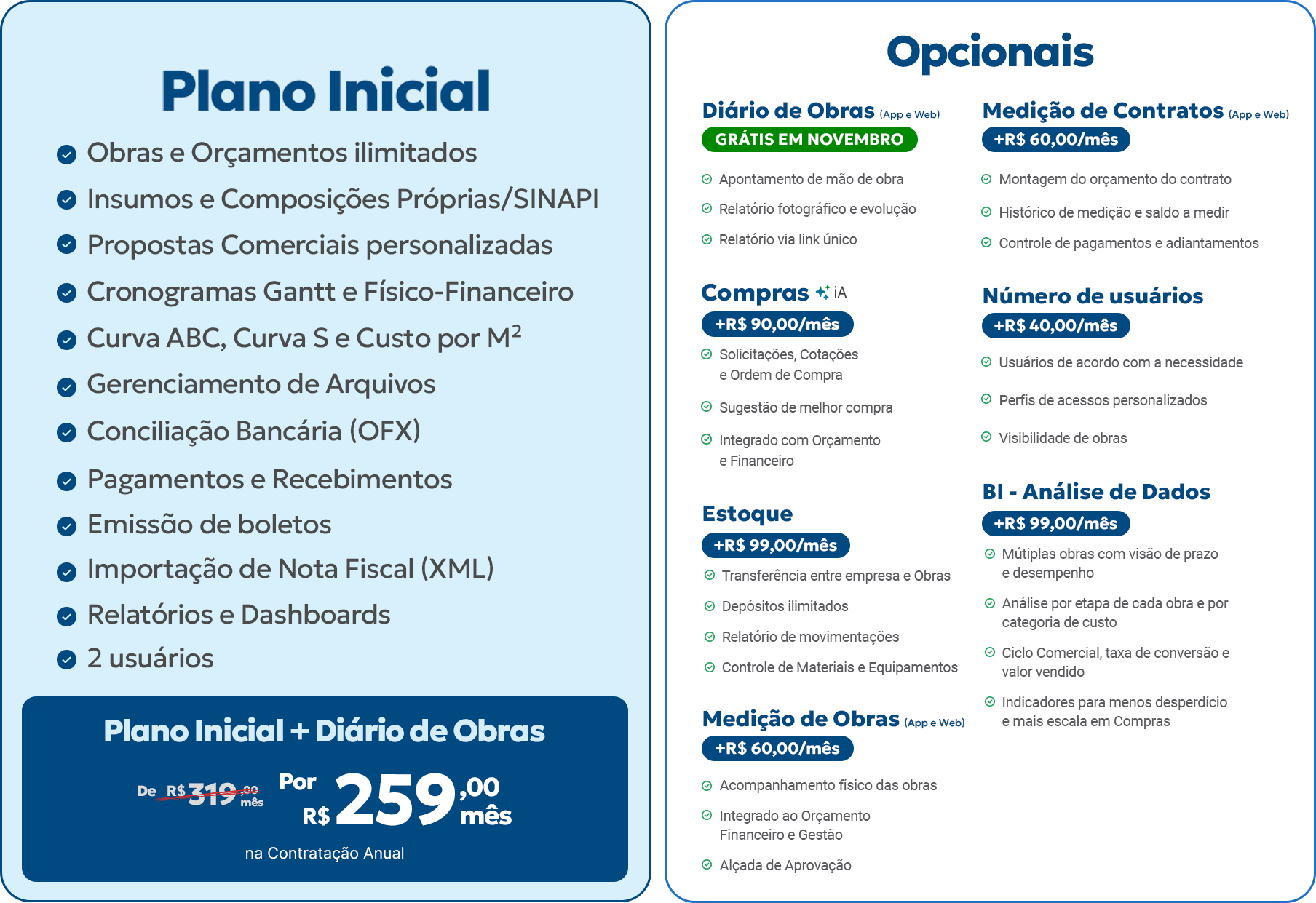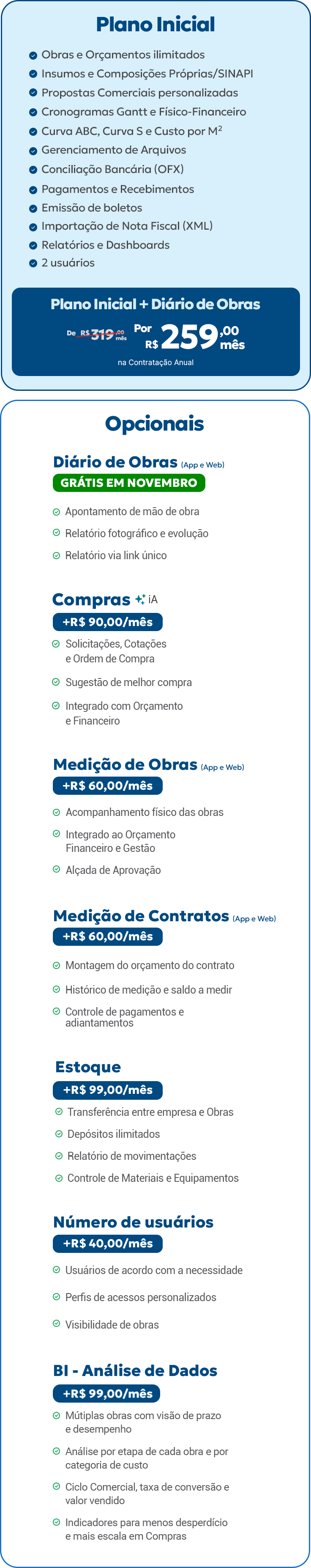 Com o Mais Controle você pode cadastrar obras ilimitadas.