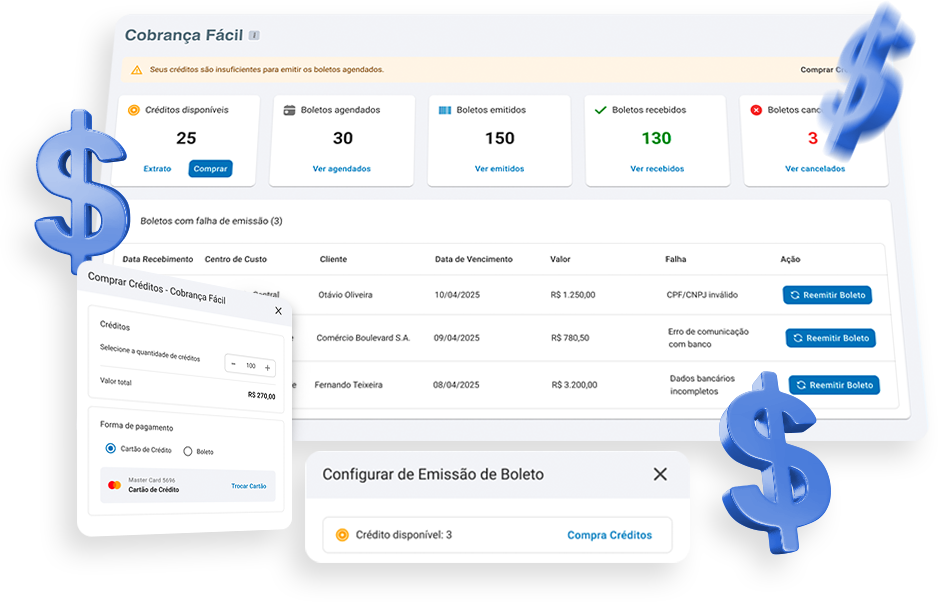 Emita e envie boletos de cobranças automaticamente pelo sistema.