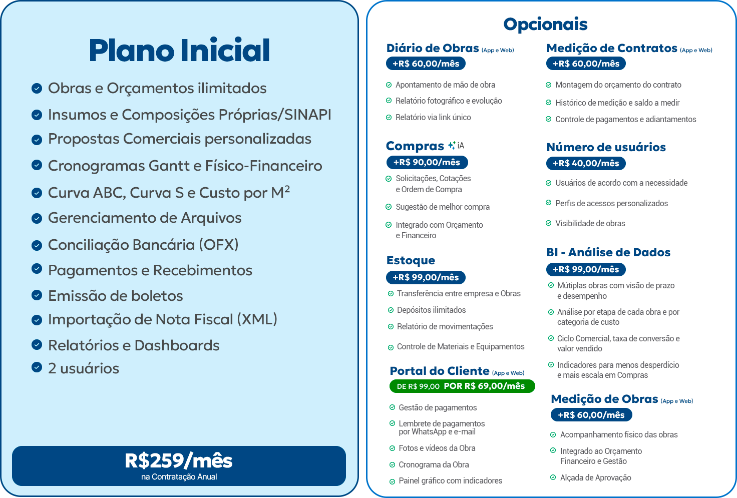 Você terá acesso a todo o nosso suporte em horário comercial de forma totalmente gratuita, além de trilhas de conhecimento, artigos, aulas semanais e webinares 100% pensados em como fazer a sua gestão de obras um sucesso.