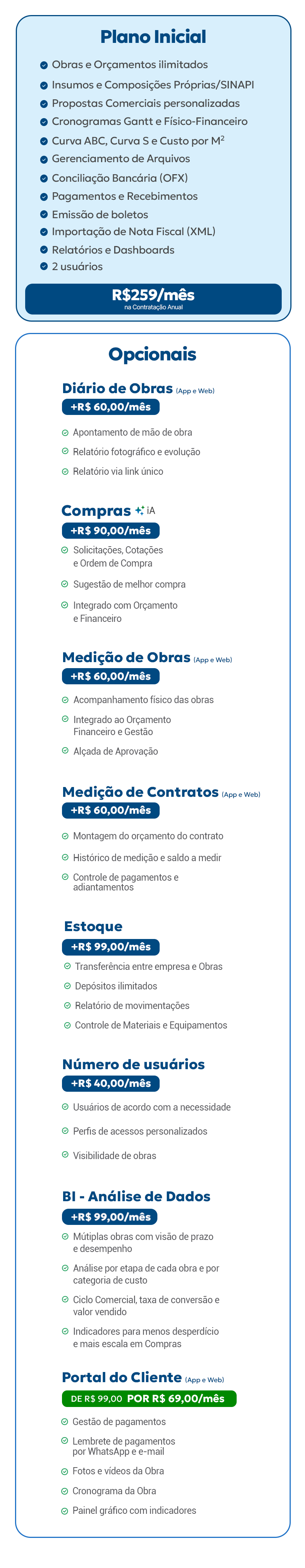 Com o Mais Controle você pode cadastrar obras ilimitadas.